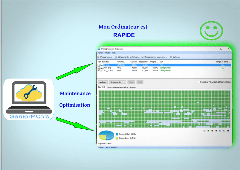 puis en OPTIMISANT l'ensemble (Défragmentation des disques, nettoyage du registre Windows, des fichiers temporaires inutiles ...etc )